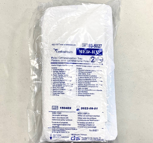 Cardinal HealthMED-RX 5-10cc Foley Catheter Insertion Tray Cath Tray Contents 10cc syringe, prefilled with sterile water Graduated basin, 1250mL Plastic transf...