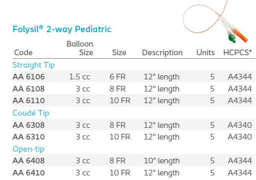 Login to view price.Folysil®: 2-way Pediatric Indwelling Catheter, Straight Tip, 5/bx
