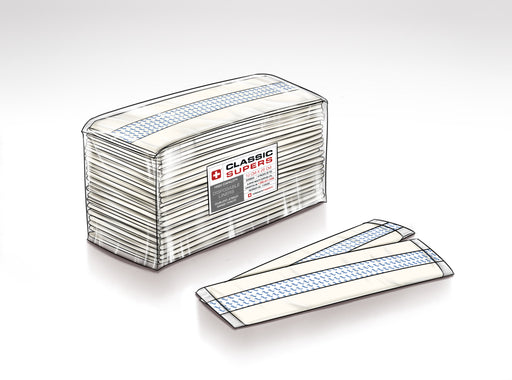 Login to view price.Classic Supers With Adhesive Strip. Non-Sterile - 200 per case.